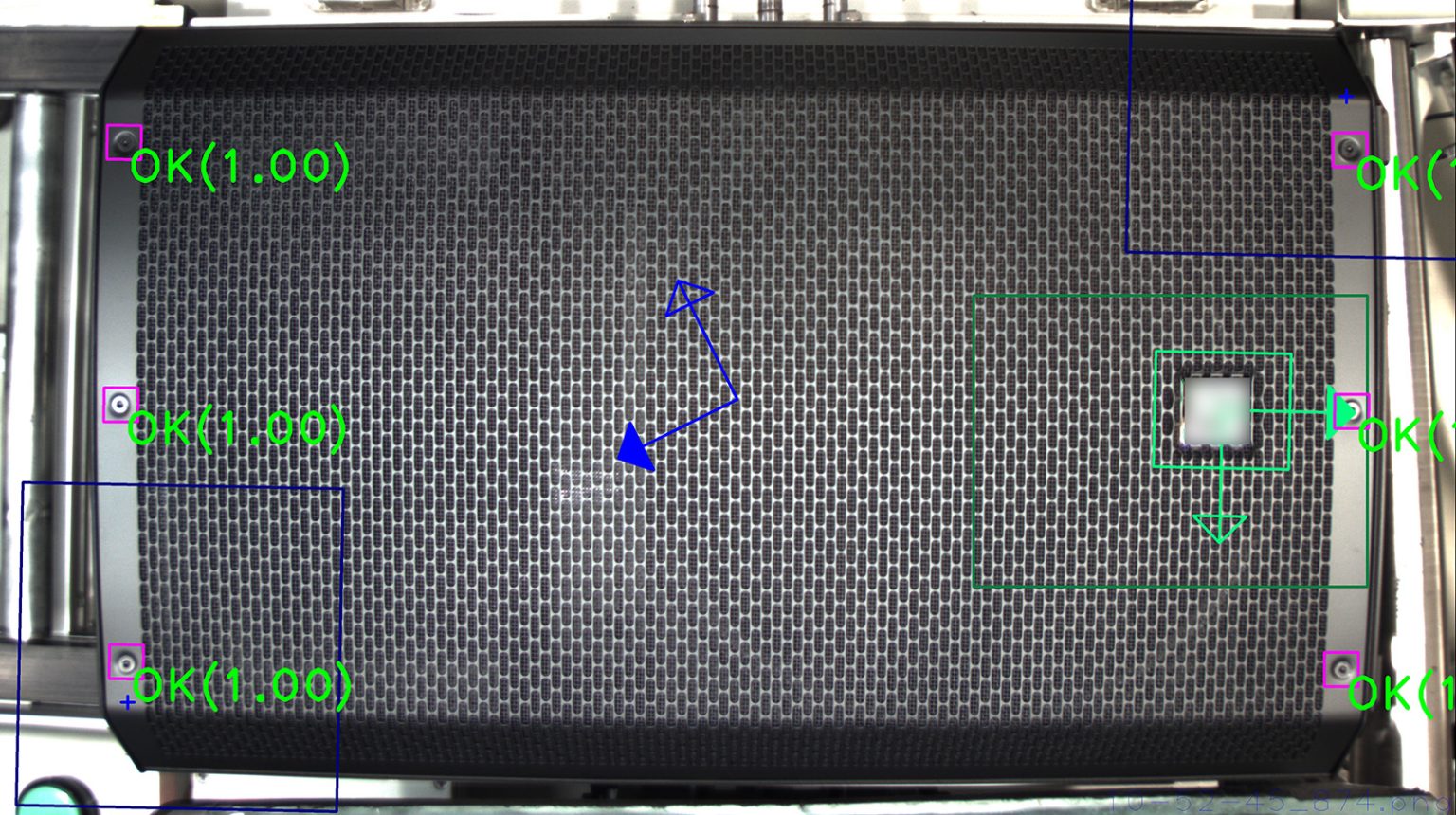 檢查流程始於安裝在組裝線上方的Basler相機,提供音響的俯視影像。該相機與協作機器人整合,當螺絲鎖附完成後,協作機器人啟動Basler相機拍攝影像。這些影像隨後由AI模型分析,檢測並標記任何遺漏或未正確鎖附的螺絲。若發現不合格(NG)產品,系統會自動觸發警報通知操作員。